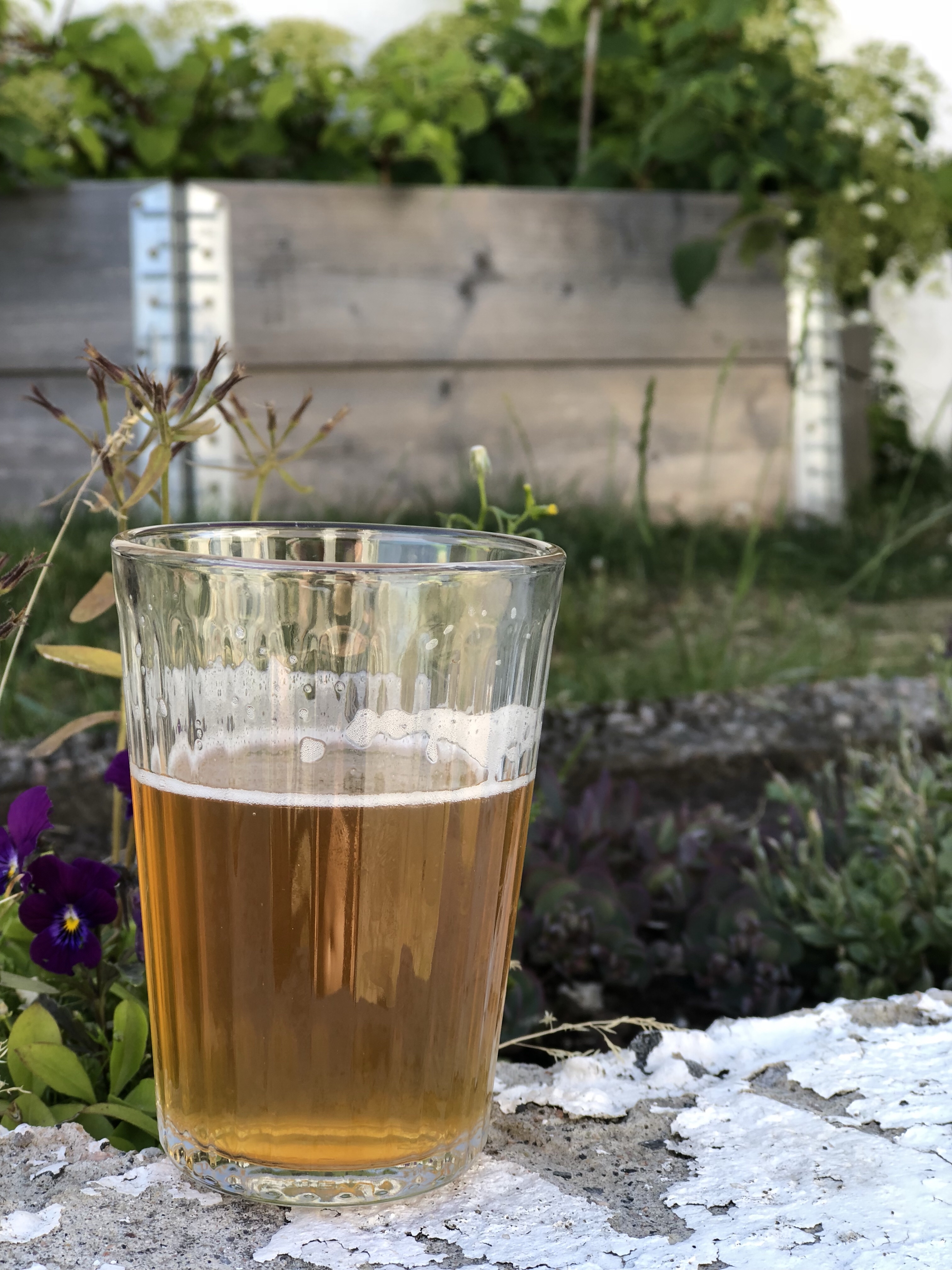 På 15min hadde vi oppi 10g humle og når koken var ferdig hadde vi oppi 40g humle til. Vi kjølte vørteren ned til 24 grader og silte den igjennom trakt med filter over i gjæringskaret. Vi tilsatte gjæren underveis i tappingen og ristet godt på dunken før vi satt det til gjæring på ca 20 grader i grovkjøkkenet. Etter en uke tørrhumlet vi og etter to uker til flasket vi med sukkerlake av 4dl vann og 6,5g sukker pr liter.